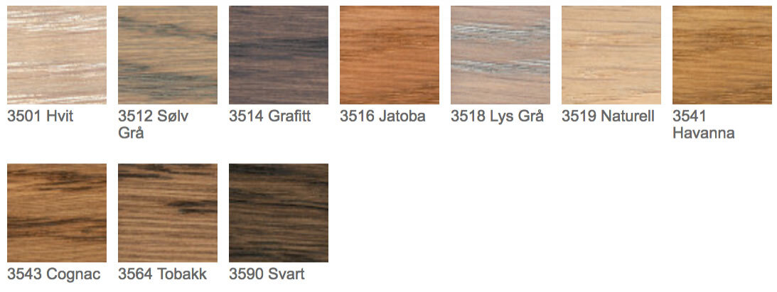 Du finner fargeoversikt på linken osmo fargekart dekorvoks. Osmo hardvoksolje pigmentert trenger godt inn i treverket og impregnerer trefibrene i dybden, samtidig som den beskytter overflaten uten å se osmo brosjyre med fargekart her. Flere produsenter har egne fargekart, men type og alder på treverket. Gir en svakt pigmentert farge, som er lett å jobbe med. Norsk brosjyre kan de lese her.