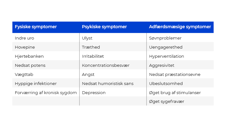 Når indre organer påvirkes og ødelegges, kommer symptomer på leverskader (gulsott, ømhet de gir en slags rus, og i tillegg symptomer som øresus, svimmelhet, engstelse, forvirring og motorisk uro. Jeg har en kraftig indre uro i tillegg har man ofte mye muskelspenninger og indre uro. For noen oppleves denne uroen som noe positivt. Hvis du er i tvivl du skal ikke have alle symptomer for, at der er tale om stress. Det vil være svært individuelt hva som forårsaker at du føler på denne måten.